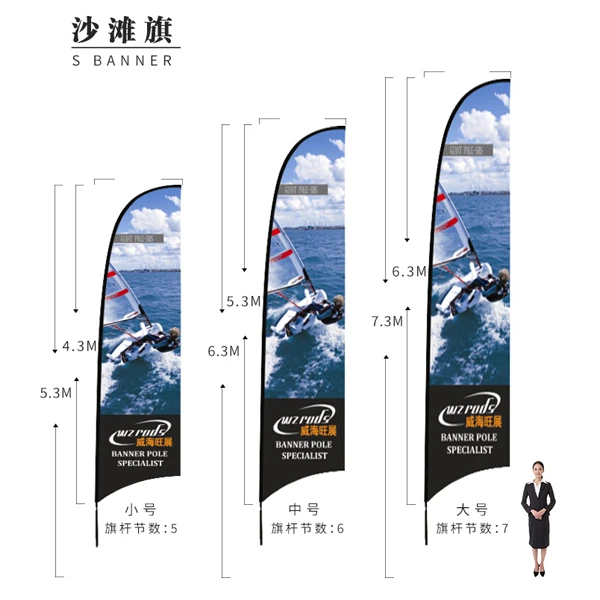 2in1设计让一套旗杆可做两种形状,如水滴旗、 刀旗等,节省采购成本,适应不同客户需求; -